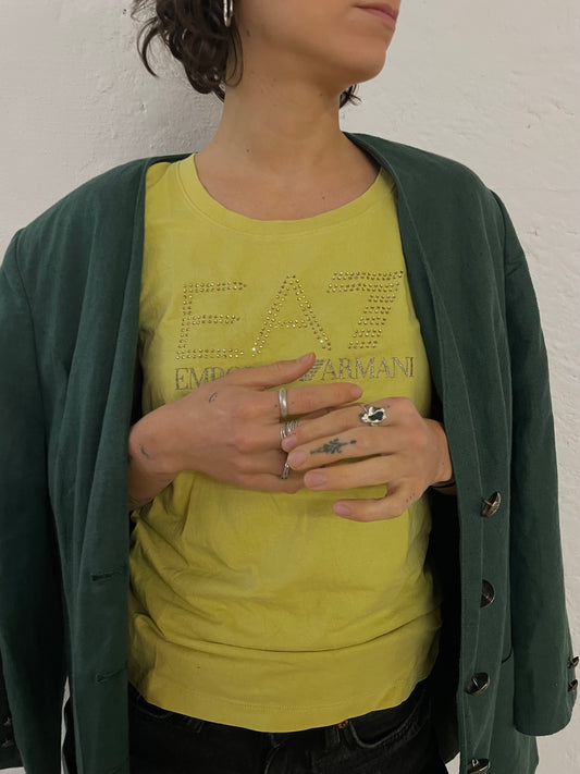 Vintage Armani T-Shirt Glitter Print & Rhinestones Front – S/M