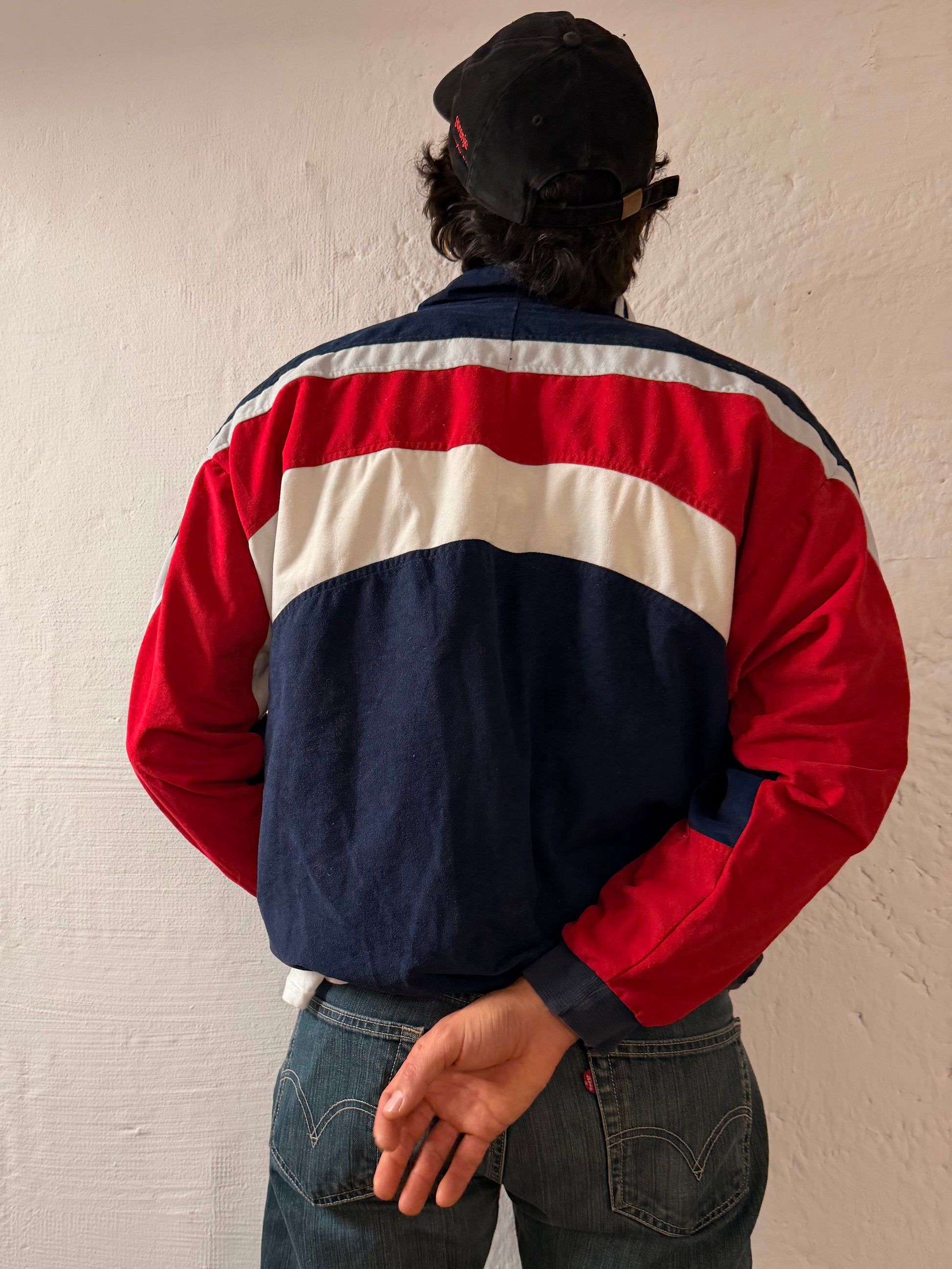 Vintage Oversized Sport Jacket Adidas Blue White & Red Cotton Blend – XL