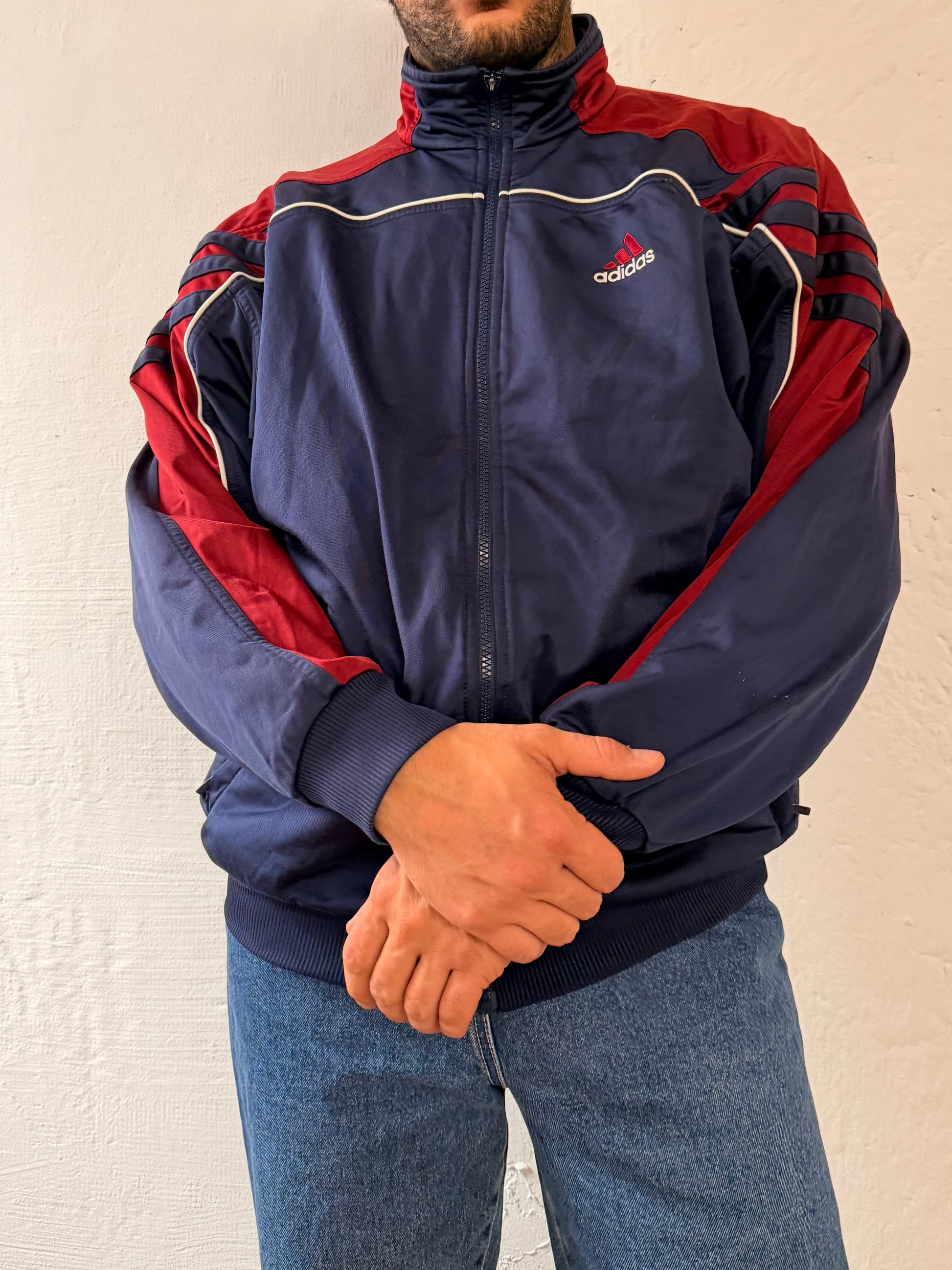 Vintage Track Jacket Adidas Blue Purple & Red Details Front & Back Logo Unisex – L