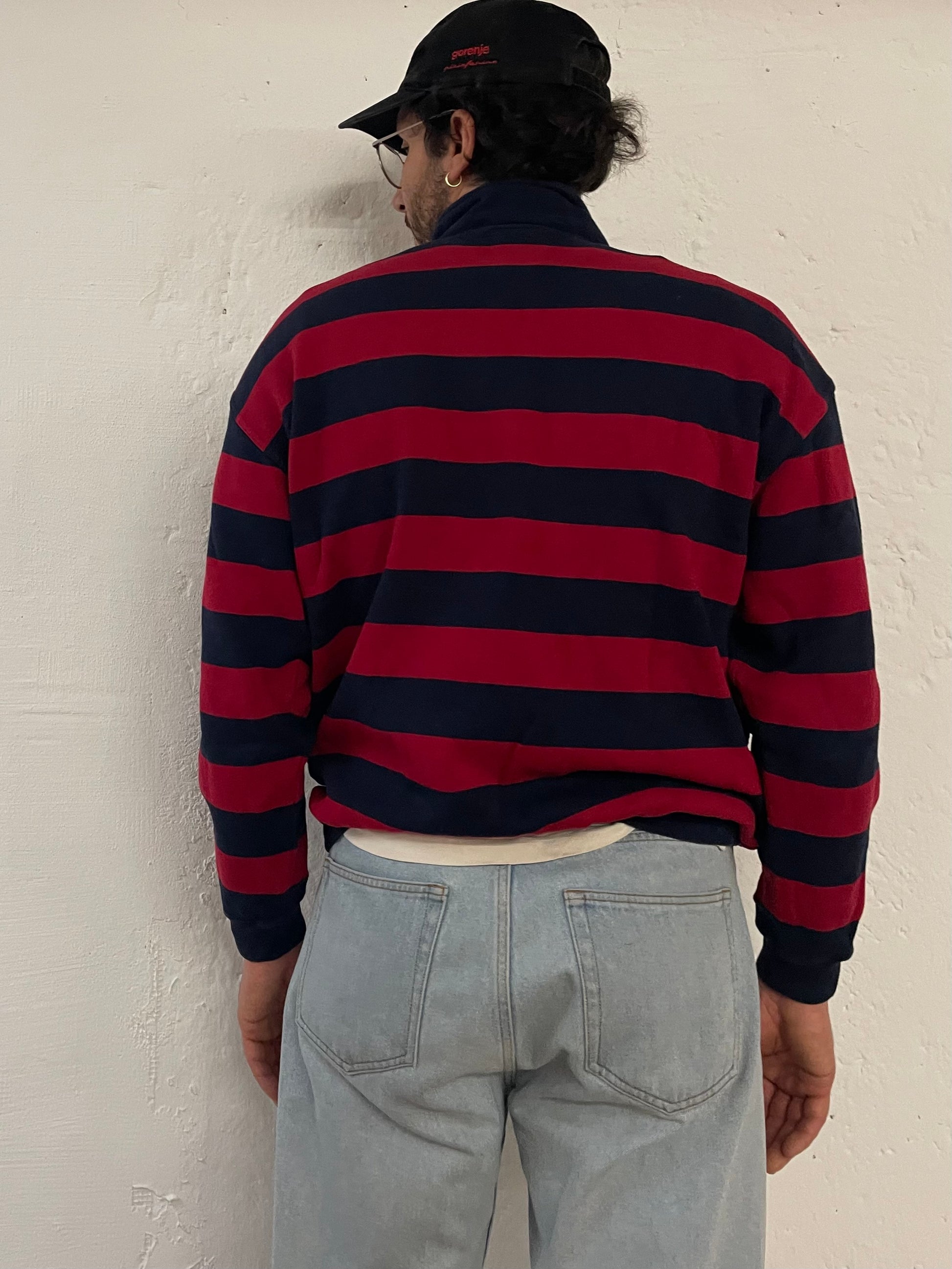 Paul & Shark Yachtling Striped Long Sleeve Polo Sweater Blue & Red – M