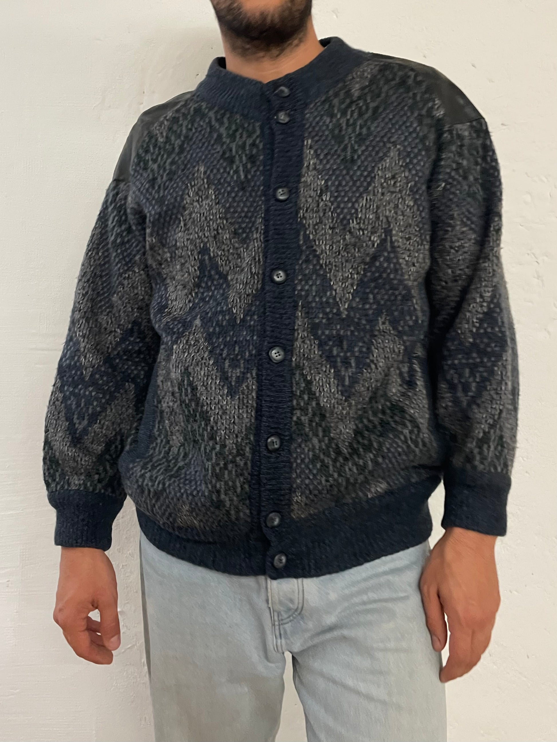 Vintage Virgin Wool Winter Oversized Cardigan Blue/Grey – L