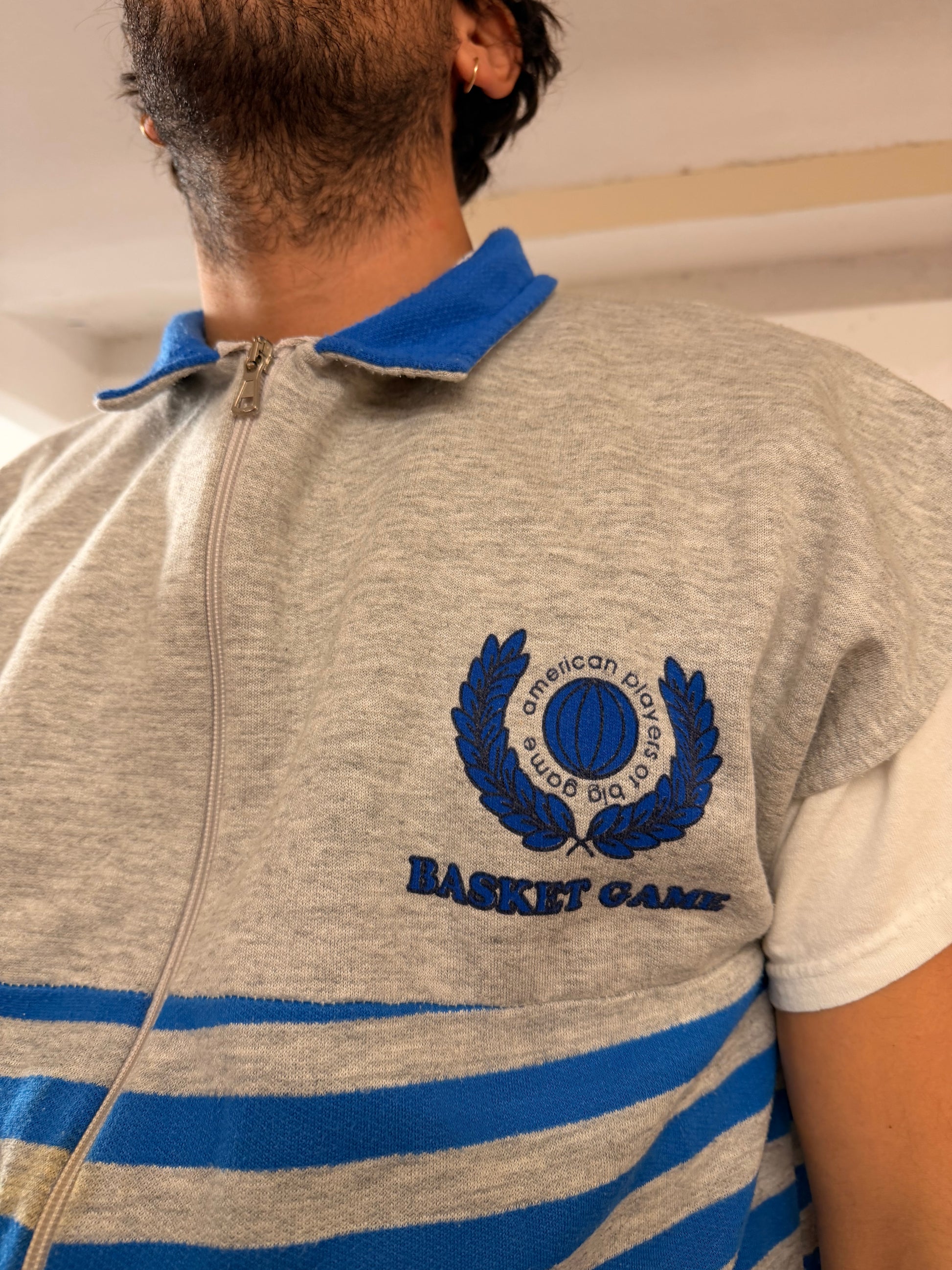 Unisex Oversized Vest Grey Striped with Blue Details Cotton & Acrylic Blend – XL
