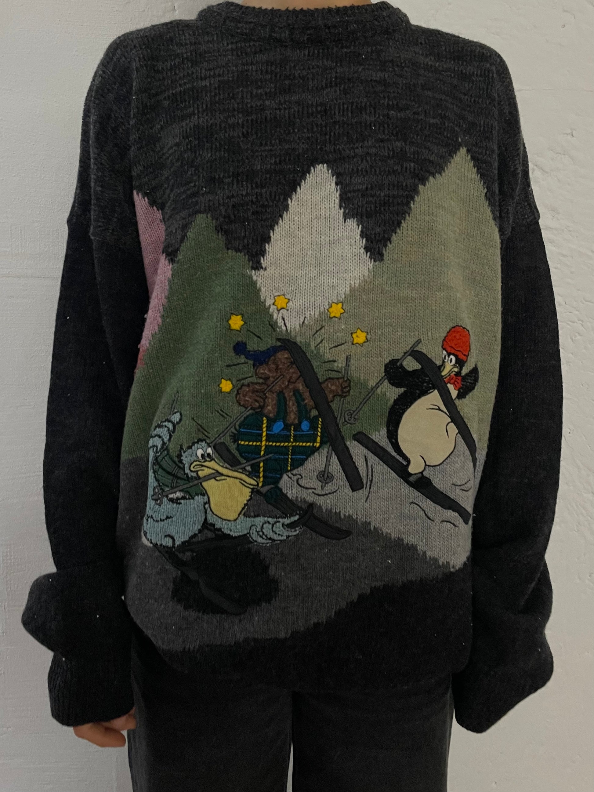 Vintage CASTELLA Sweater Grey Frontprint with Embroidery – M