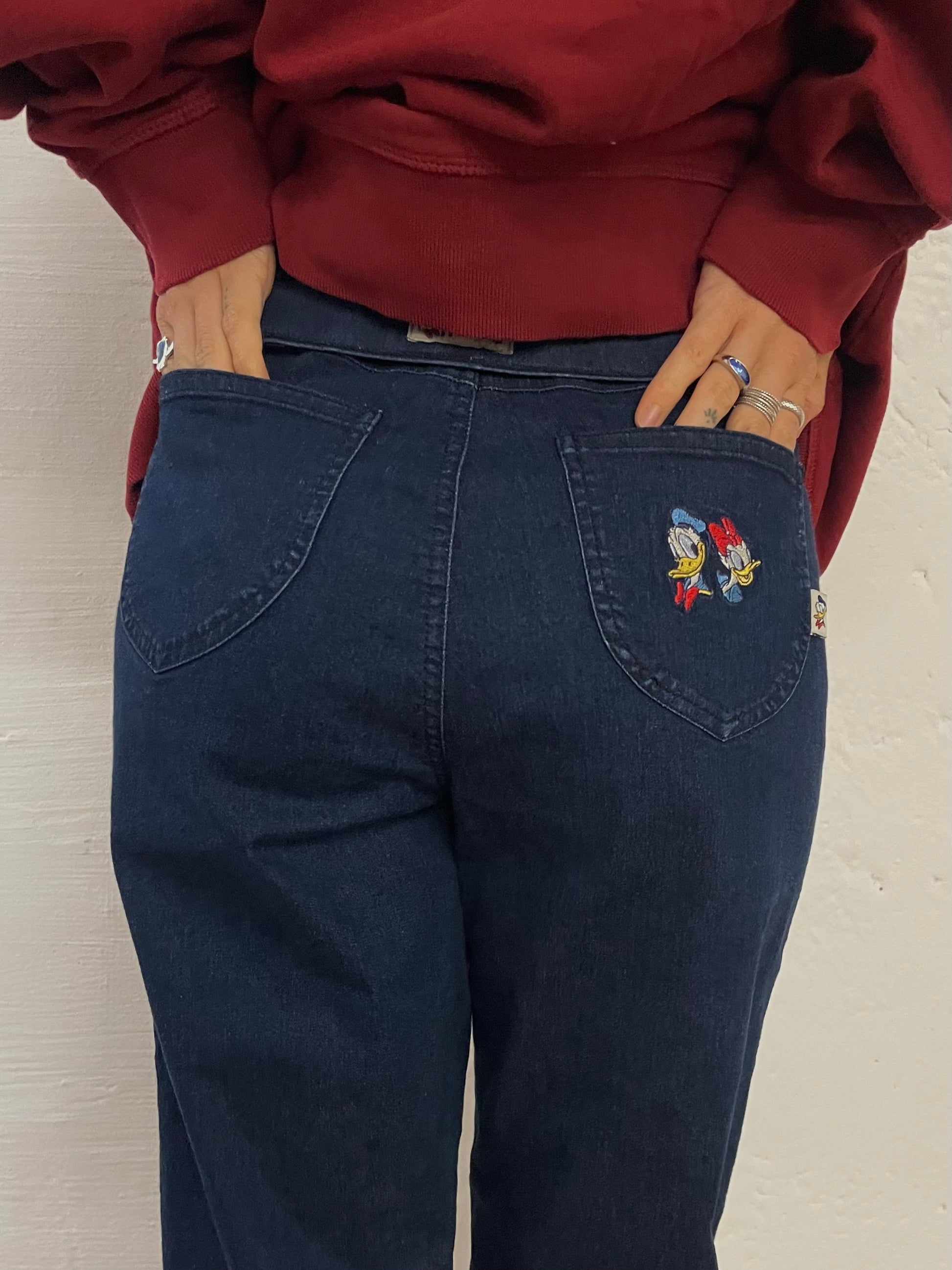 Vintage Stretchy Disney Jeans Donald Duck & Daisy Embroidered Blue Pants - S