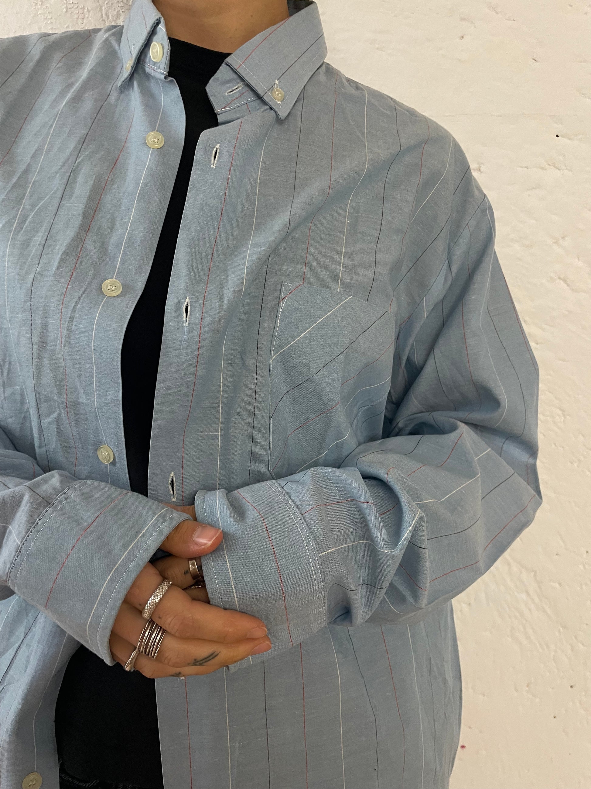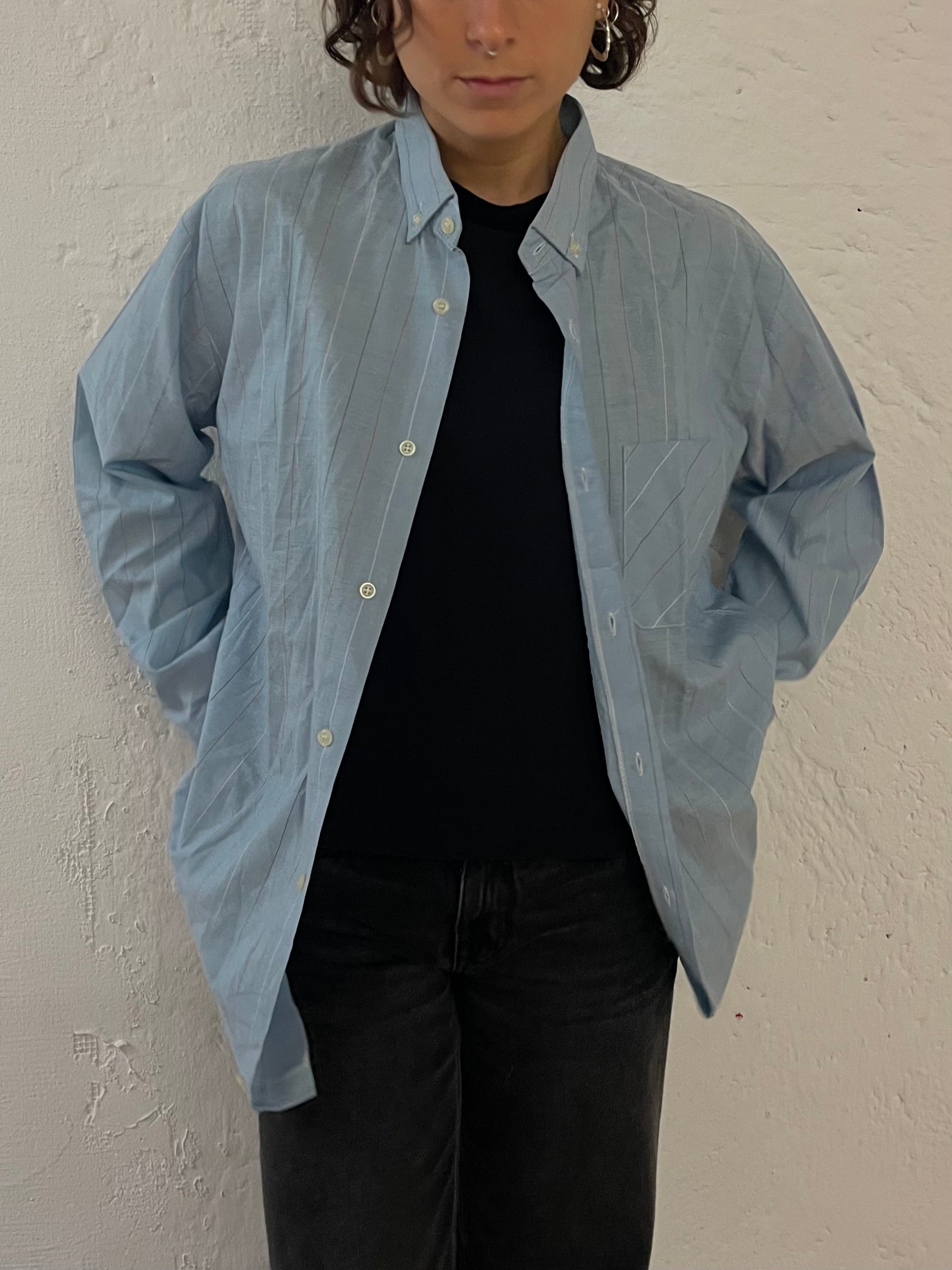 Long Sleeve Shirt Blue with Red Lines – M/L