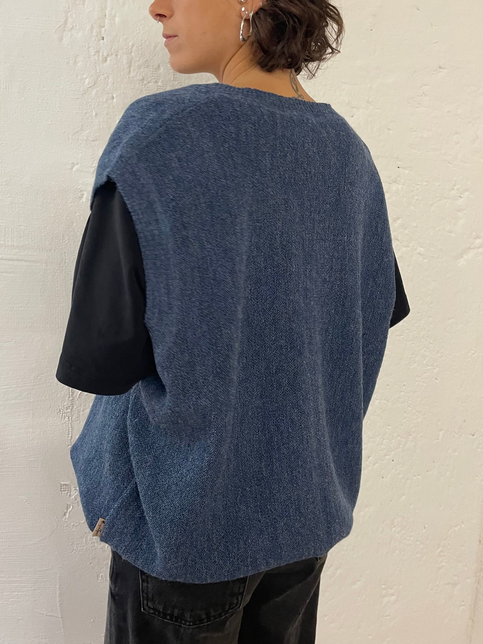 Vintage Alpaca Wool Pullunder – Made in Peru – Blue – Size L