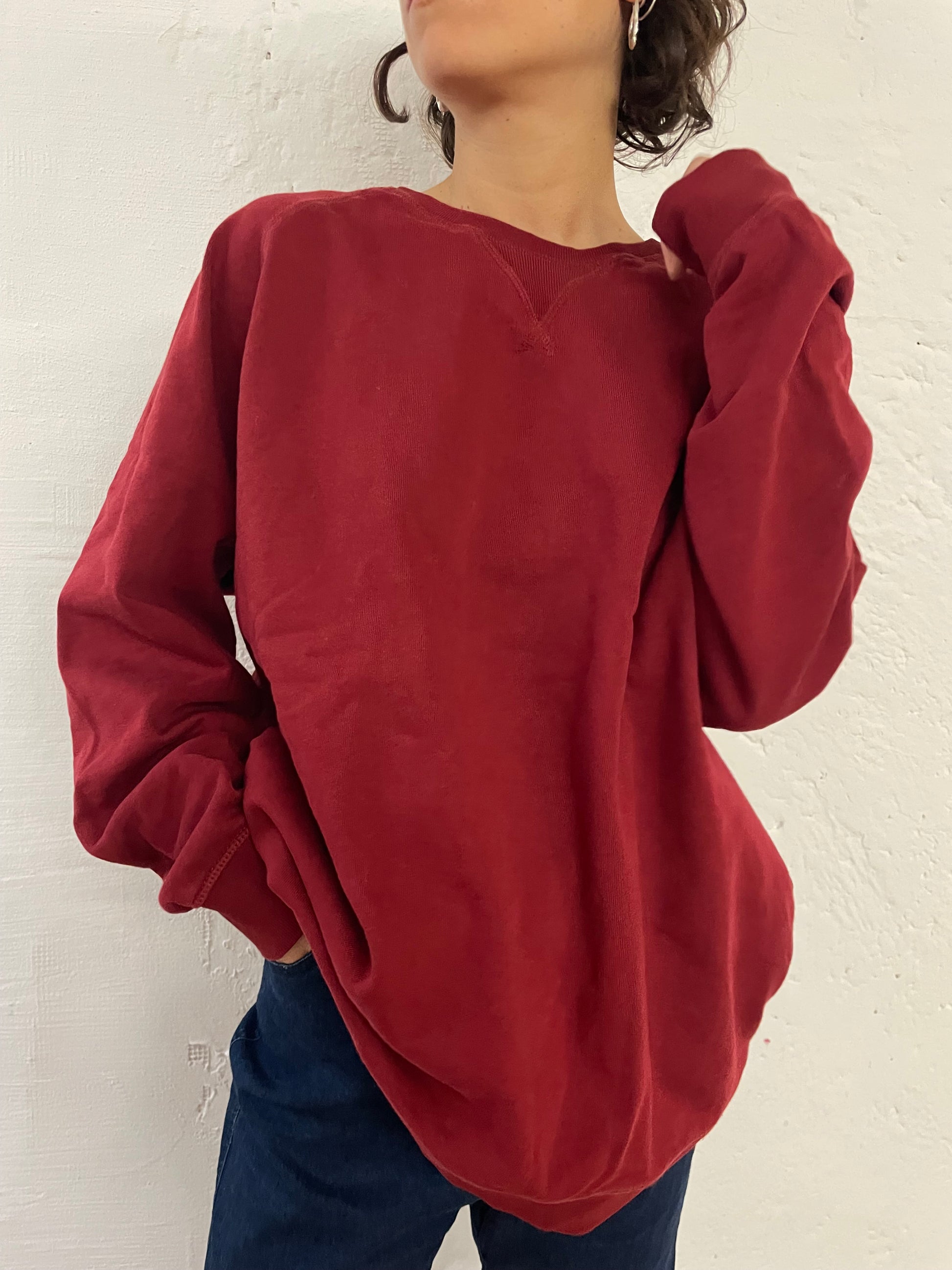 Classic Red Long Sleeve Sweater Crew Neck – L